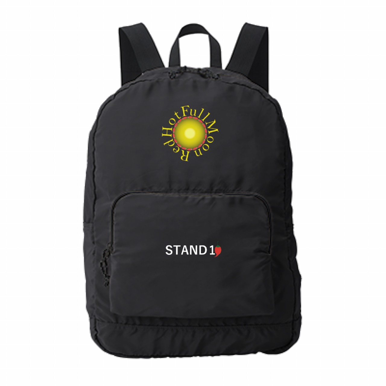 ポケットには当ショップのロゴを、メインには唐辛子×満月を表現した激辛満月のデザインをあしらいました!